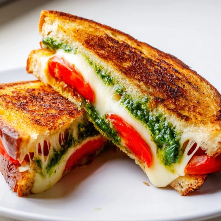 Save The smell of toasted sourdough and melting mozzarella pulled my roommate out of her bedroom on a Tuesday afternoon when neither of us had anywhere to be. I was standing at the stove, flipping what looked like an ordinary grilled cheese, but the moment she saw the vivid green pesto peeking out from the edges, she asked if I was trying to impress someone. I wasn't, but that sandwich did become my go-to whenever I wanted something that felt special without the fuss. It's the kind of meal that makes you pause mid-bite and wonder why you ever settled for plain butter and American cheese.