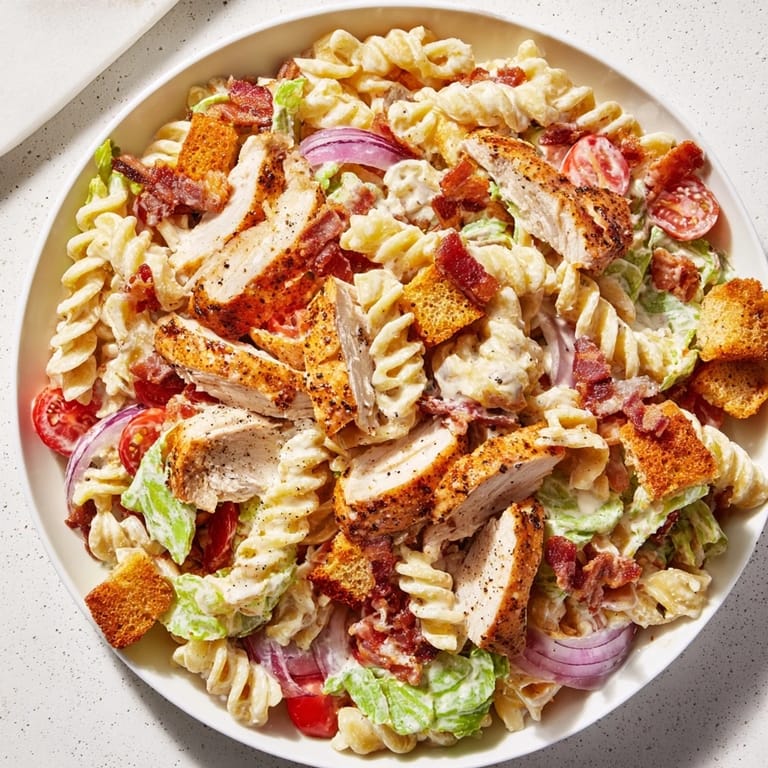 Save I threw this together on a Wednesday night when my fridge was a mix of leftovers and good intentions. There was half a box of rotini, some chicken I'd been meaning to grill, and a head of romaine that needed using. I didn't plan on it becoming something we'd crave weekly, but after that first bite, creamy and tangy with little bursts of bacon, it just stuck.