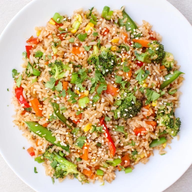 Save A vibrant, flavorful bowl featuring golden, crispy rice tossed with colorful sautéed vegetables and savory seasonings. Perfect for a light yet satisfying supper.