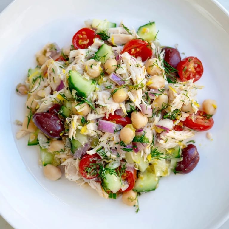 Save I threw this salad together on a Tuesday night when the fridge looked bare but the pantry had two cans of beans I kept forgetting about. The chicken was leftover from meal prep, and I had half a bunch of dill wilting in the crisper. What started as a scrappy dinner became something I craved all week. The beans gave it weight, the lemon cut through everything bright and clean, and that dill brought the whole thing to life in a way I didnt expect.