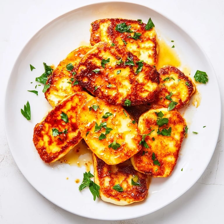 Save I discovered hot honey halloumi at a tiny taverna in Cyprus, sitting at a wobbly table while watching the chef toss golden cheese slices into a hot pan with such casual confidence. The squeak and sizzle of halloumi hitting the oil, followed by that drizzle of amber honey laced with heat—it was a revelation. I've been chasing that exact moment in my own kitchen ever since, and I've learned that the magic lives in the contrast: the salty cheese giving way to that spicy-sweet glaze that makes you want another piece immediately.