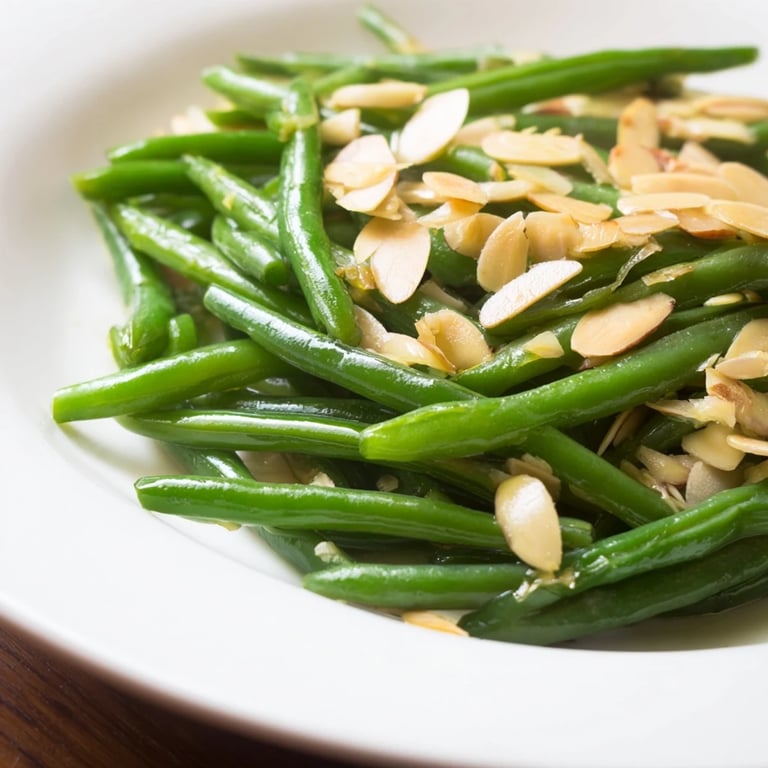 - Sprinkle the toasted almonds over the green beans and serve immediately.